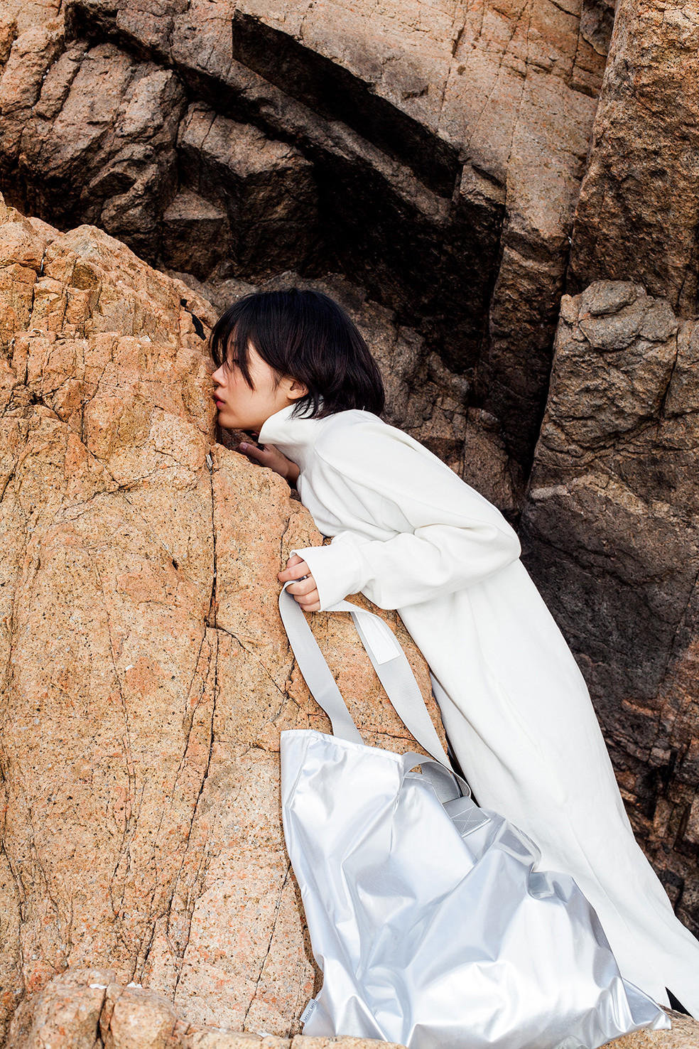 QUARTZ BAG 원석인 석영에서 모티프를 따왔습니다. 가방자체의 공간에 초점을 맞추었습니다. 많은 물건을 가져다닐때 용이 합니다. 적은 물건과 많은 물건을 넣었을 때 느낌이 다릅니다. 네모나거나 세모나게 자유로운 모양으로 선택하여 들수 있습니다. 원단 자체가 방수가 되는 재질이라 비오거나 눈이 오는날 행동이 더욱 자유로워집니다.